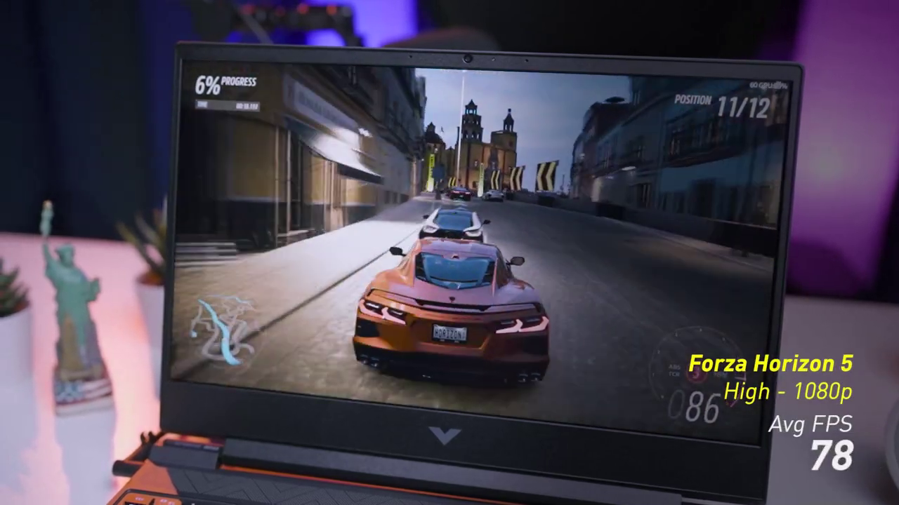 Kalau di game AAA, kayak farcry 6 kita coba main di 1080P high, experience nya cukup stabil, dan nyaman dimainin, aman diatas 50 an minimum fps nya. terus game sport kayak forza horizon settingan high juga masih dapet di 78 fps.