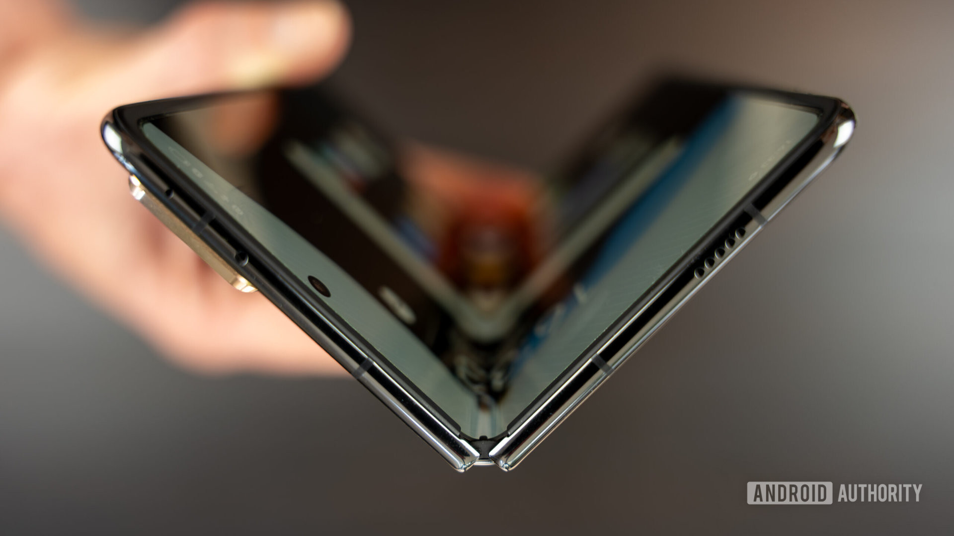 pPanel yang dibawa juga HDR 10+ yang bisa memberikan kecerahan hingga 1600 nits dalam mode otomatis. Desain layar depannya menggunakan layout punch hole yang memiliki kamera sebesar 16MP dan selain itu Foldable phone ini akan mendukung Stylus.