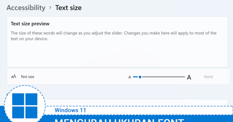 - Setelah selesai menyesuaikan ukuran font, klik tombol “Apply” untuk menerapkan perubahan ke seluruh sistem pada komputer.