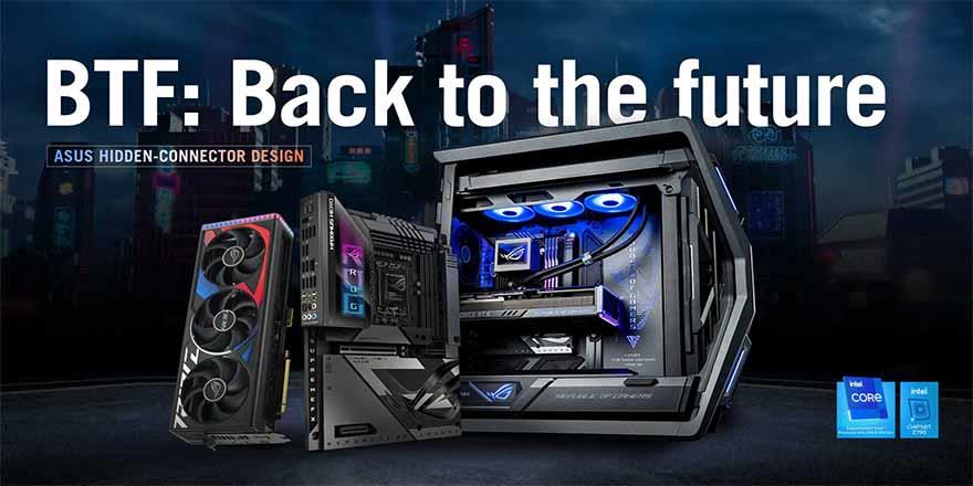Ekosistem komponen BTF ASUS merupakan opsi pendekatan rakit PC yang memungkinkan pengguna untuk menyembunyikan semua kabel yang terhubung langsung ke motherboard. Seperti kabel pemasok daya ke motherboard, penyambung drive SATA 2,5 inci, penyambung kipas casing, dan kabel penyambung tombol front panel dan port I/O. Motherboard BTF juga dilengkapi slot kartu grafis daya tinggi yang siap menyediakan semua daya yang dibutuhkan kartu grafis BTF.