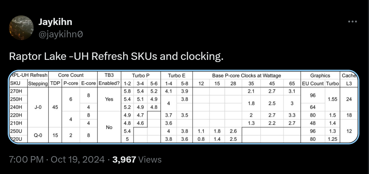Mengenai kapan Intel akan merilis chip mobile “Raptor Lake Refresh” yang akan datang, Intel berencana untuk meluncurkan seri tersebut bersamaan dengan CPU laptop Core Ultra 200HX & 200H “Arrow Lake” mereka, yang dijadwalkan akan diluncurkan pada Q1 2025.