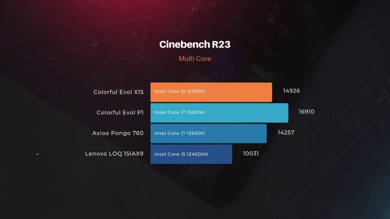 Salah satunya ialah penggunaan prosesor i5 12500H, yang yaa cukup berani, dimana brand lain cuman kasih 12450H di kelas harga segini macem msi gf63, cyborg, lenovo loq, ni brand malah kasih si 12500H nya sekalian yang akhirnya kan ni laptop emang keliatan unggul banget dari sisi CPU nya di cinebench tadi dibanding laptop 10 jutaan lain.