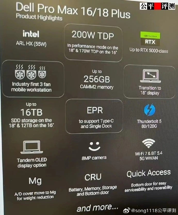 Seperti yang terlihat di Weibo (via @94G8LA), Dell Pro Max 18/16 terungkap beserta spesifikasinya, termasuk CPU, GPU, memori, penyimpanan, dan fitur lainnya. Meskipun model CPU yang tepat belum terungkap, CPU tersebut akan memiliki daya 55W, yang mengisyaratkan penggunaan chip seluler Arrow Lake HX kelas atas.
