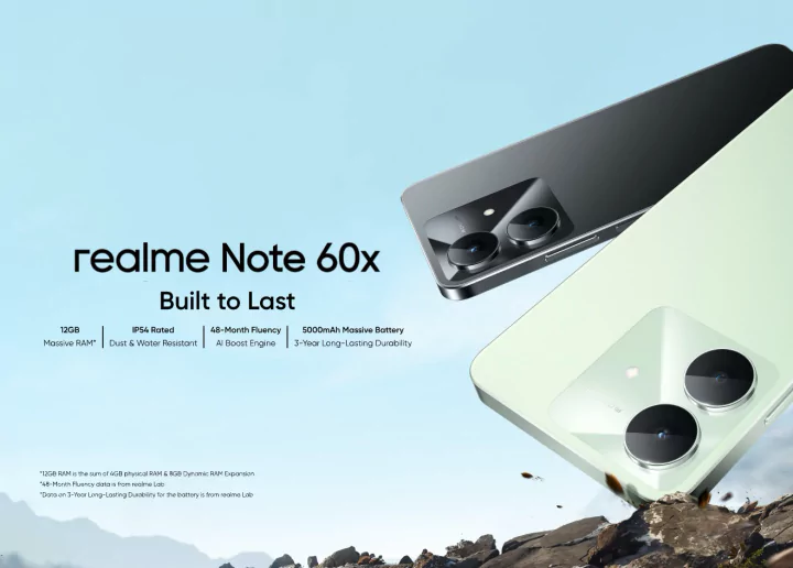 Di sektor daya, Realme Note 60x dibekali baterai besar dengan kapasitas 5.000mAh, sehingga mampu menunjang aktivitas harian. Pengisian dayanya mendukung kecepatan hingga 10W, meskipun tergolong standar untuk kategori harganya. Berbicara soal performa, smartphone ini menggunakan chipset Unisoc T612 yang cukup tangguh di kelas entry-level. Chip ini dipadukan dengan RAM sebesar 4GB dan penyimpanan internal berkapasitas 64GB.