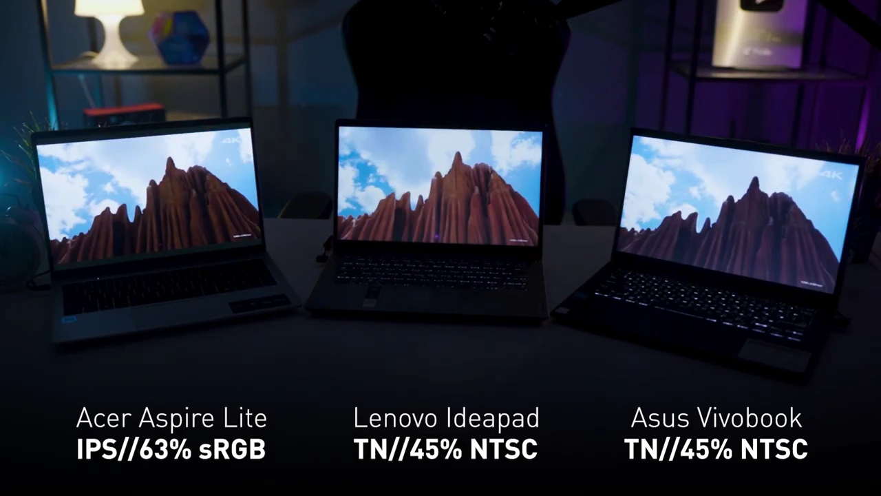 Selain itu, kami rasa Acer Aspire secara display terlihat kebiru-biruan dan lenovo justru terlihat cukup kasar dari pencahayaan dan agak kekuning-kuningan. Padahal saat kami cek tipe panel yang digunakan, justru layar laptop Lenovo memiliki panel yang sama dengan yang digunakan Asus Vivobook yang artinya settingan dari produsen laptop pun berpengaruh dengan kualitas output layar meskipun layar yang digunakan tipenya sama.