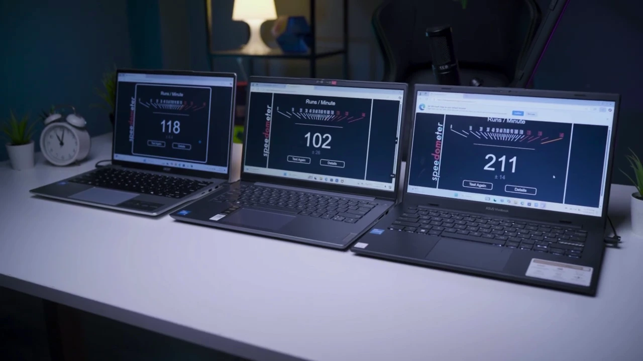 Kami pun lakukan pengujian synthetic browser benchmark menggunakan Speedometer 2.1 yang hasilnya ternyata ASUS Vivobook Go 14 unggul telak dengan total 211 runs/min dibanding Lenovo Ideapad yang cuma menyentuh 102 runs/min dan 118 runs/min untuk Acer Aspire.