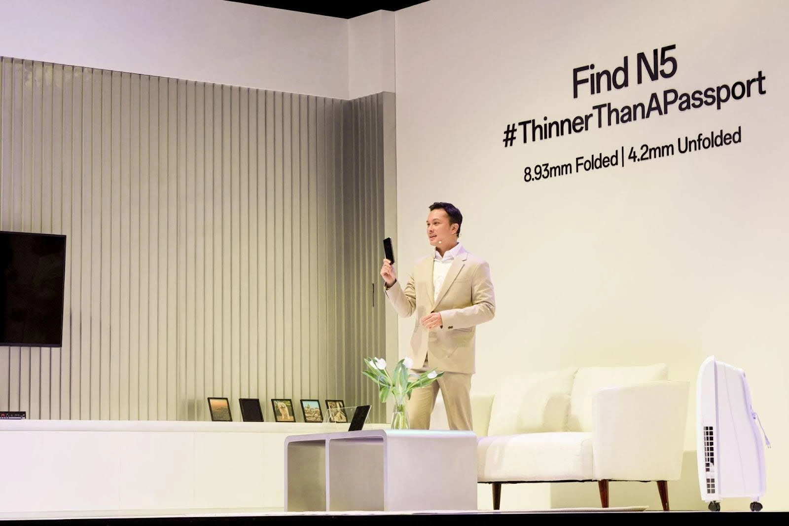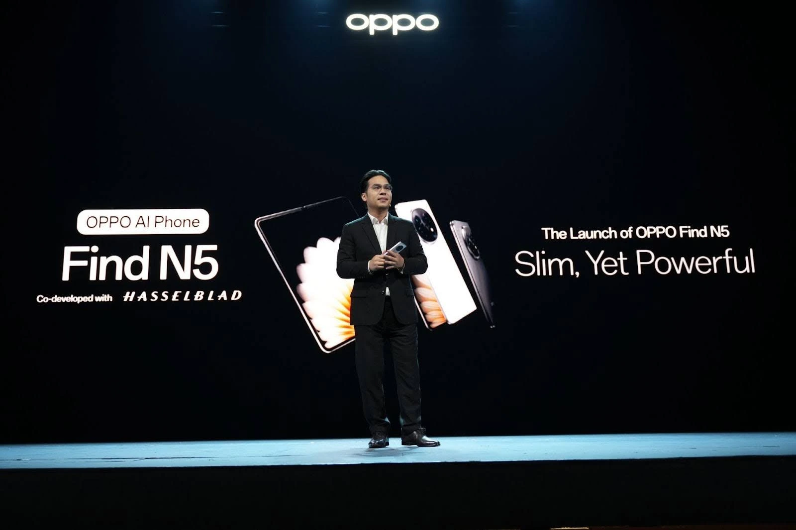 OPPO Find N5 hadir dengan desain revolusioner yang setipis paspor, memberikan keseimbangan sempurna antara gaya dan performa. Dengan engsel yang kuat tahan hingga 50kg dan teknologi AI terbaru, Find N5 bukan hanya sekadar smartphone lipat, tetapi solusi untuk gaya hidup premium dan kebutuhan bisnis modern. ” Patrick Owen, Chief Marketing Officer OPPO Indonesia
