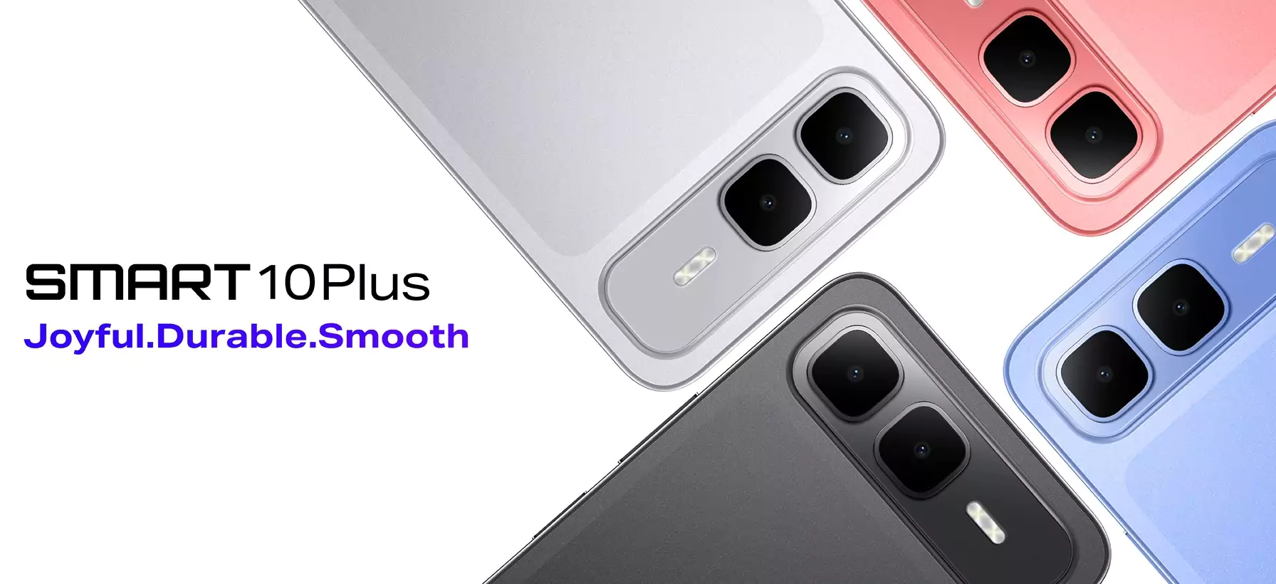 Smart 10 Plus mengusung layar 6,67 inci HD+ LCD dengan refresh rate 120Hz dan touch sampling rate 240Hz, membuat pengalaman scrolling dan gaming lebih smooth. Layarnya juga sangat terang dengan 700 nits, ideal untuk penggunaan di luar ruangan. Dengan ketebalan bodi 8,25mm dan berat 187 gram, ponsel ini nyaman digenggam. Desainnya modern dengan pilihan warna menarik: Sleek Black, Titanium Silver, Iris Blue, dan Ruby Red.