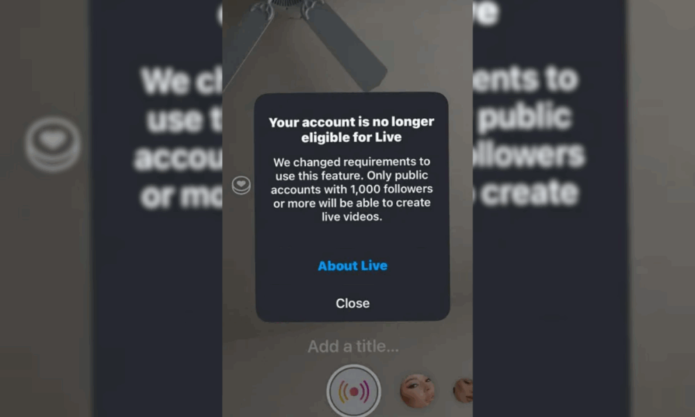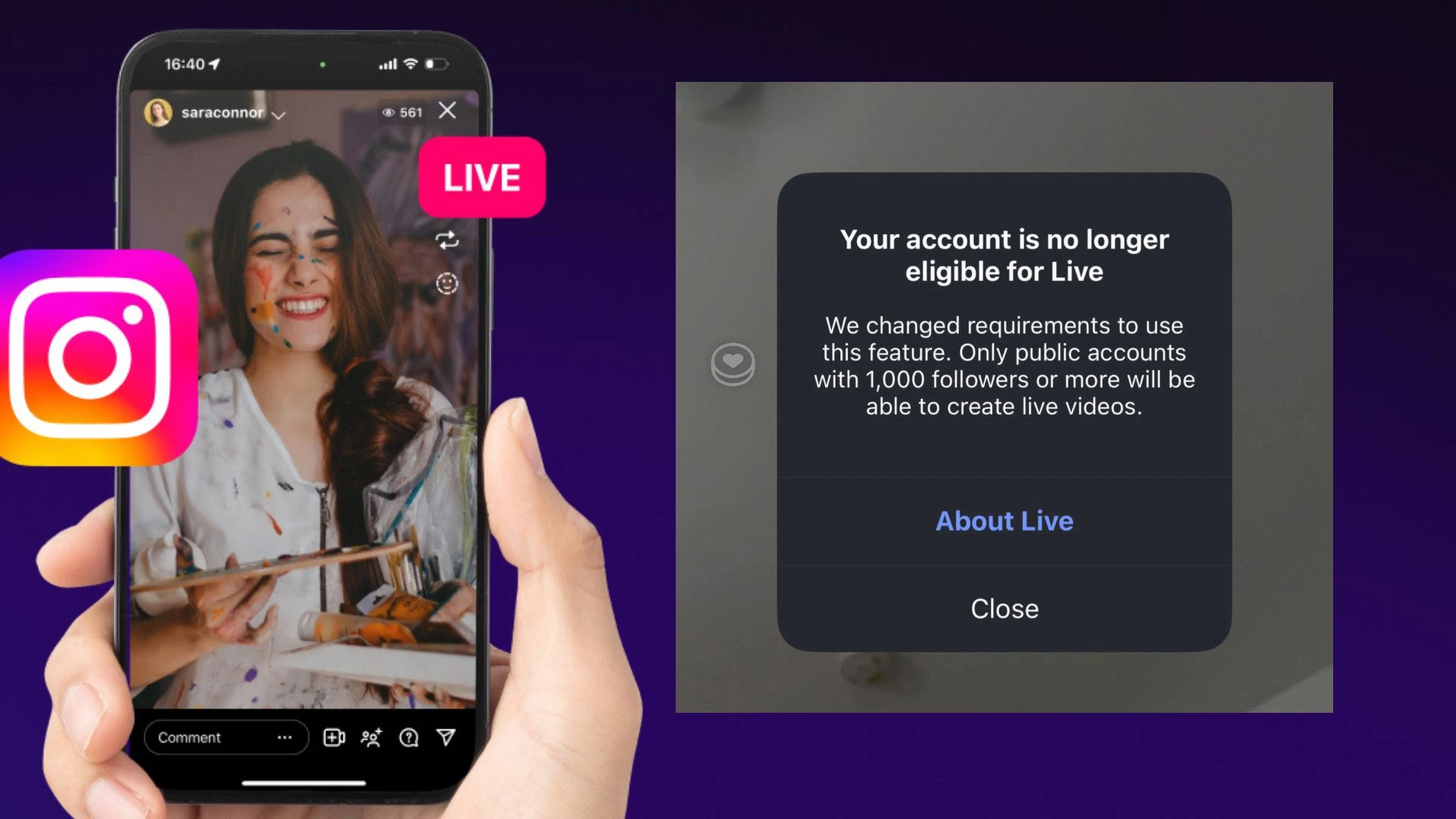 Mulai Agustus 2025, fitur siaran langsung di Instagram hanya tersedia bagi akun yang telah mencapai 1.000 pengikut. Meta, sebagai induk perusahaan, tidak memberikan penjelasan resmi terkait alasan pembatasan ini. Sebagai alternatif, pengguna masih bisa melakukan panggilan video, namun jelas fitur tersebut tidak memiliki daya jangkau dan interaksi publik seperti live streaming.