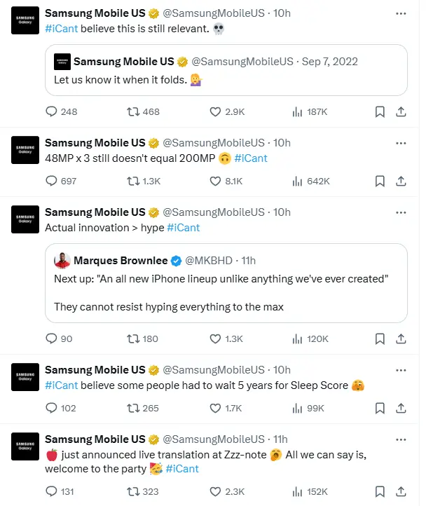 Salah satu cuitan paling menohok merujuk pada sindiran lama mereka di tahun 2022, yang berbunyi, “#iCant believe this is still relevant” (Tidak percaya ini masih relevan), yang disertai dengan pesan singkat, “Kabari kami jika sudah bisa melipat.” Pesan ini jelas merupakan pukulan telak yang menggarisbawahi posisi Samsung sebagai pionir dalam teknologi foldable, sebuah area di mana Apple hingga kini masih tertinggal.