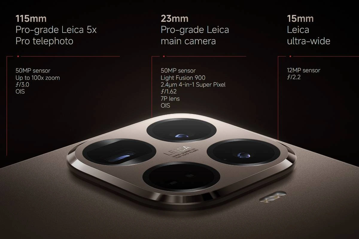 • Kamera Leica: Konfigurasi tiga kamera yang terdiri dari sensor utama 50MP Light Fusion (OIS), ultrawide 12MP, dan yang menjadi bintang utama, kamera telefoto 50MP dengan kemampuan zoom optik 5x (115mm, OIS). Ini adalah peningkatan besar dari zoom 2,6x di generasi sebelumnya.