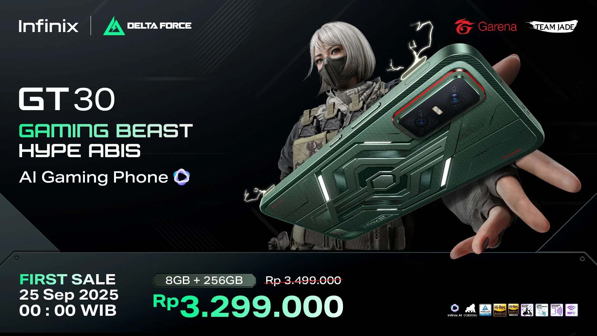 Dengan serangkaian fitur yang biasanya ditemukan di kelas atas, Infinix GT 30 siap menjadi primadona baru di segmen harga 3 jutaan. Penjualan perdananya akan dimulai pada 25 September 2025 di semua kanal resmi Infinix.