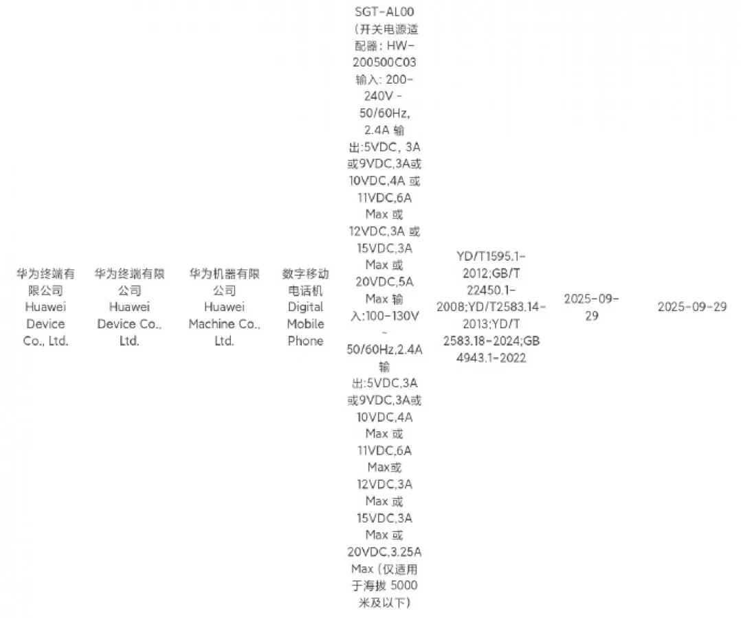 - Huawei Mate 80 Pro (SGT-AL00): Mendukung pengisian daya cepat 100W.
