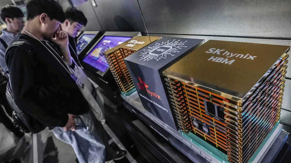 Display teknologi memori HBM SK Hynix yang menjadi rebutan industri AI dan berpotensi memicu kenaikan harga laptop di pasar global.