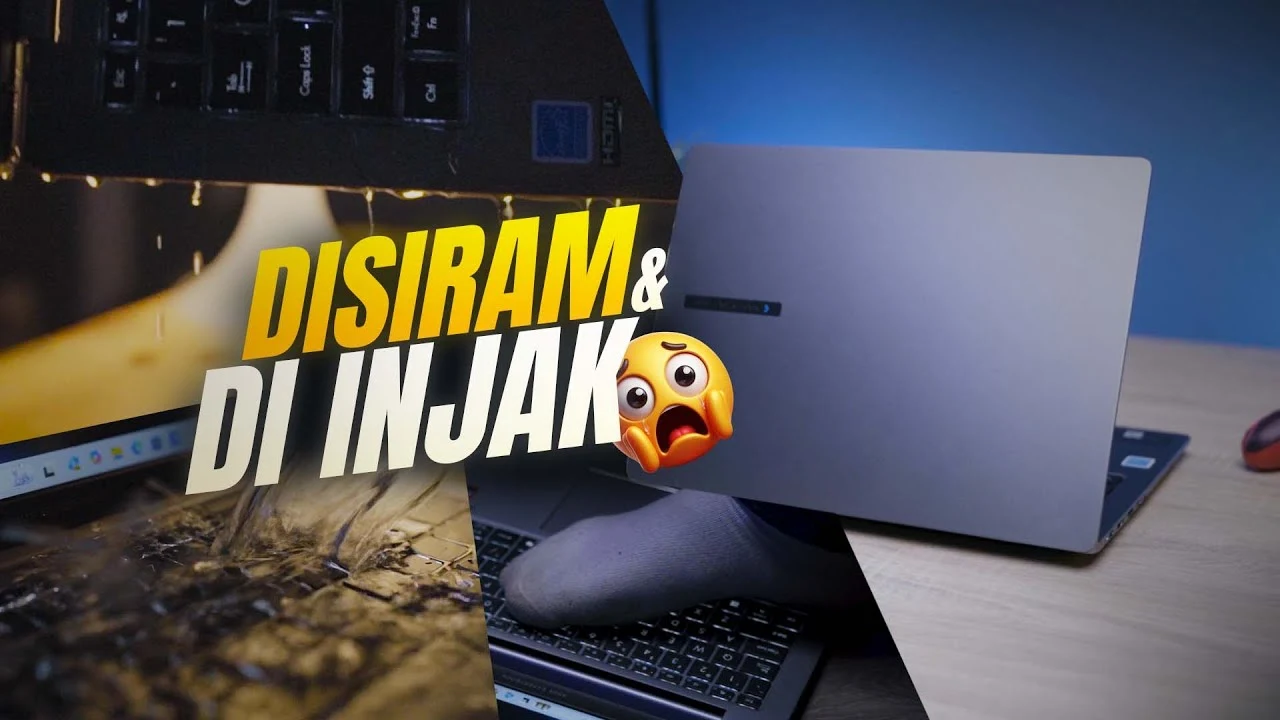 Drop Test: Kami menjatuhkan unit ini dari ketinggian meja kerja. Hasilnya? Hanya lecet kosmetik, sistem booting tetap normal. Sementara laptop pembanding mengalami engsel patah dan layar pecah.