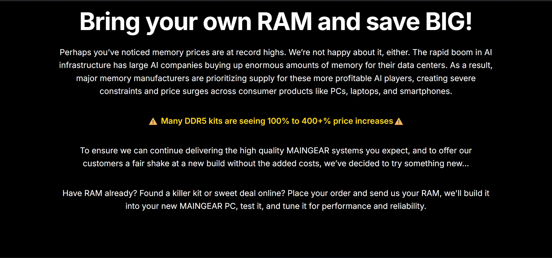 Kirim ke Maingear: Anda bahkan bisa mengirimkan RAM yang Anda beli dari luar ke fasilitas Maingear agar mereka yang memasangkannya untuk Anda.