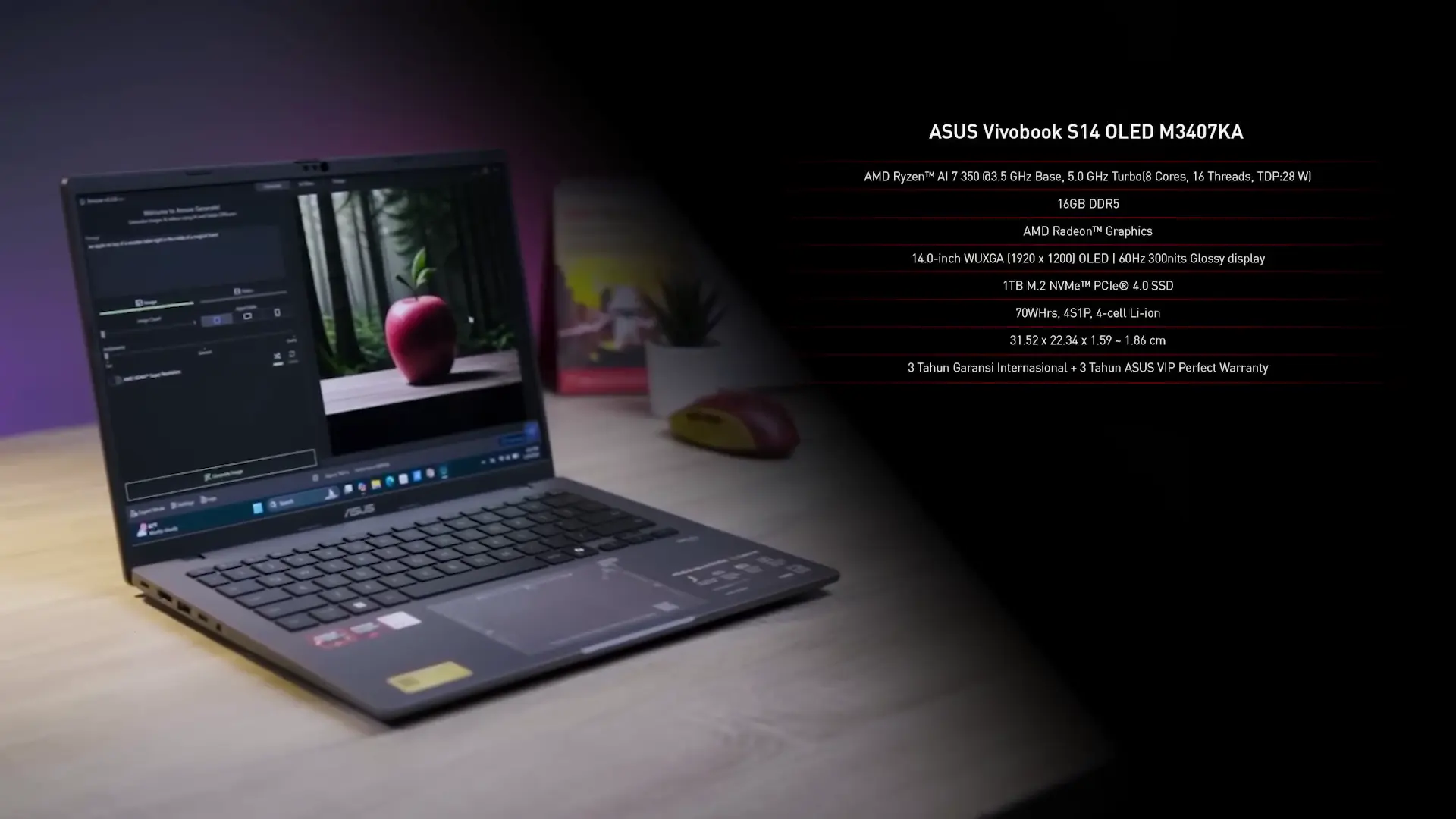 ASUS Vivobook S14 OLED M3407KA bertenaga Ryzen AI dengan daya tahan baterai hingga 20 jam.